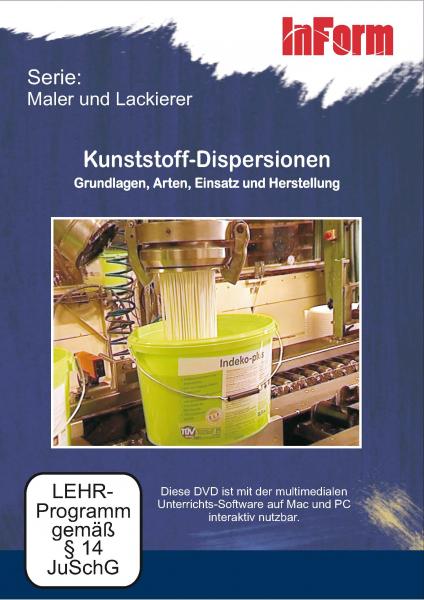 Einsatzbeispiele von Kunststoff-Dispersionsfarben im Innen-und Außenbereich • Theorie der Kunststoffdispersionsfarbe: Die Produktpalette der Kunststoff-Dispersionen • Bestandteile der Dispersionsfarben • Wirkung von Verdickungsmitteln • kalter Fluss • Bindemechanismus • Wirkung von Emulgatoren • Polymerisation • Anwendungsvoraussetzungen bei Farbanstrichen • Eigenschaften der Dispersionsfarben, Einteilungskriterien, Glanzgrad, PVK • Fassadenfarben, Abtönfarben, nicht pigmentierte Dispersionen, Spachtelmasse, Schutzanstriche, Lasuren, verschiedene Kunststoffputze, Effektbeschichtungen • Produktion der Kunststoffdispersionen im Werk